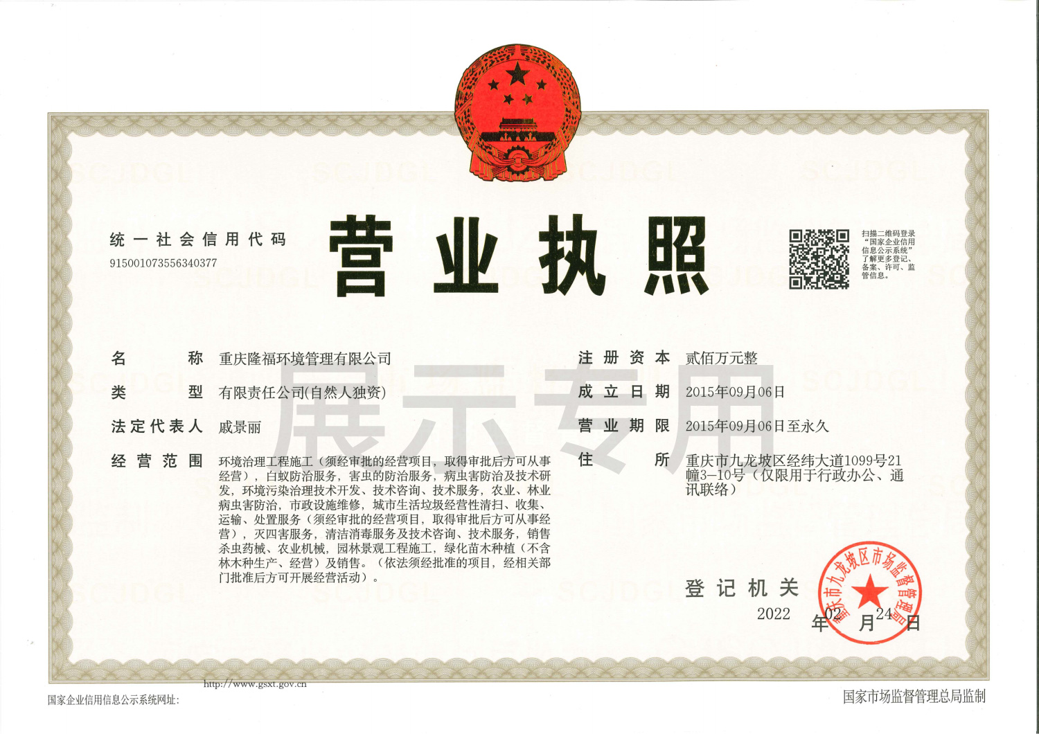 重慶隆福環(huán)境管理有限公司(以下簡(jiǎn)稱(chēng)“我司”)成立于2015年,另于2022年成立海南分公司。是一家從事專(zhuān)業(yè)白蟻防治、害蟲(chóng)消殺、消毒防疫、園林景觀施工、滅蟲(chóng)藥械銷(xiāo)售為一體的綜合性服務(wù)公司。